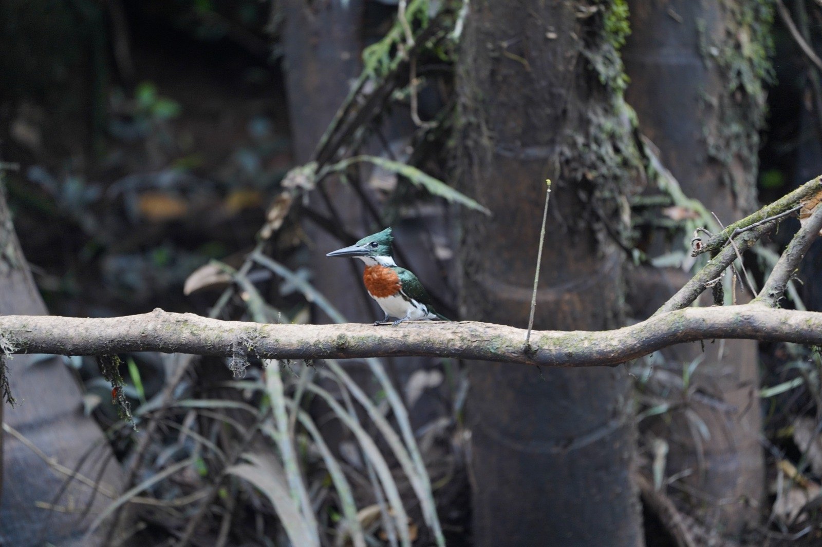 We take a canoe from the lodge back to El Puente de Cuyabeno, with one last chance to see wildlife along the river.